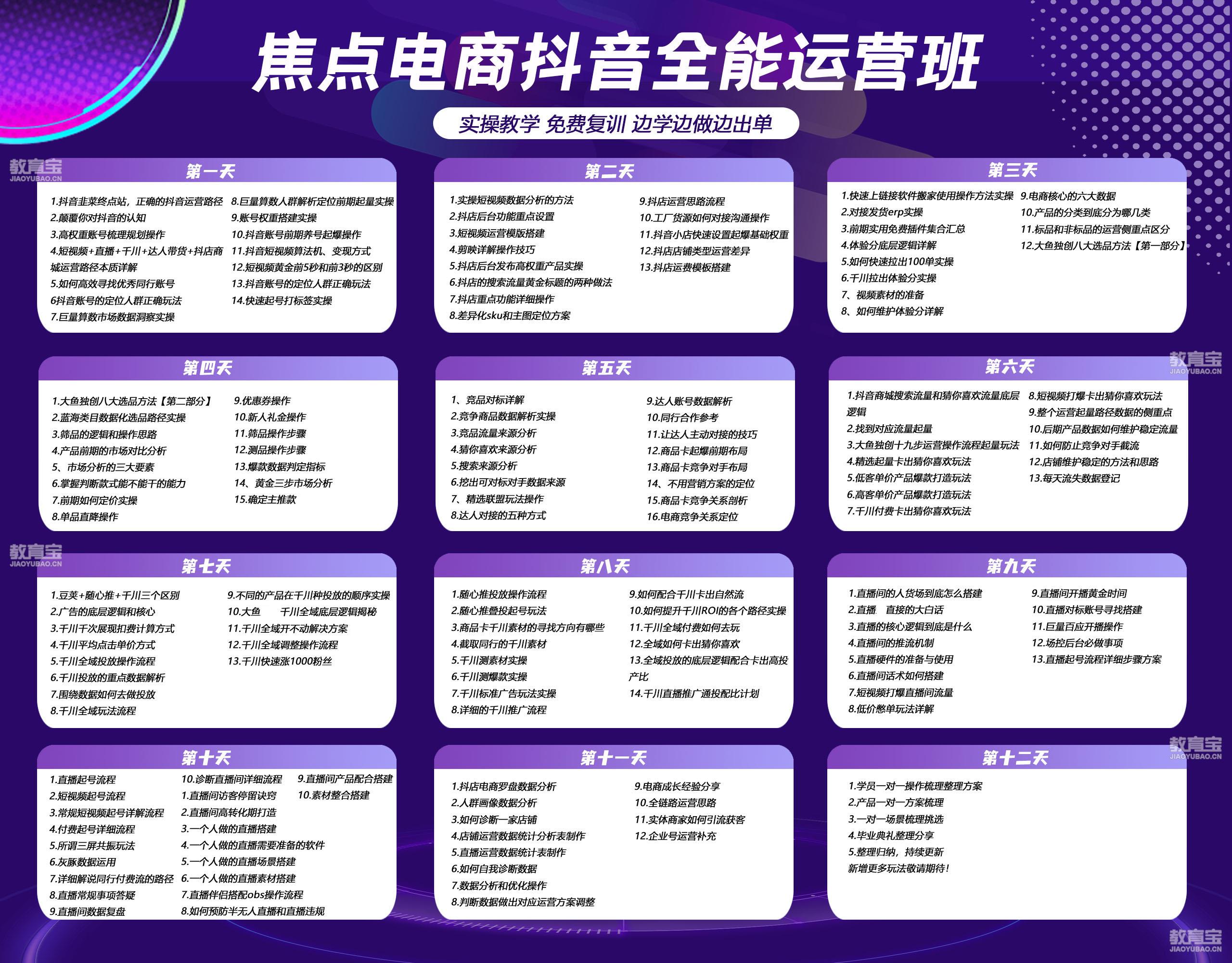 「义乌焦点电商培训」 是义乌市焦点教育科技有限公司在教育宝平台开设的店铺,若该店铺内信息涉嫌虚假或违法,请点击这里向教育宝反馈,我们将及时进行处理。